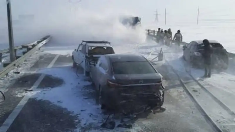Как уточнили в ведомстве, в результате плохой видимости на трассе из Нур-Султана в Петропавловск Mercedes въехал в заднюю часть "ГАЗели", в результате чего оба авто загорелись. Ехавший сзади "ВАЗ-2106", увидев ДТП начал тормозить, и в него сзади врезалась Mazda, а в бок - Chevrolet.