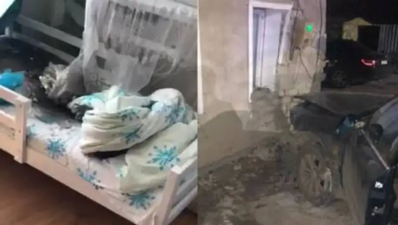 Если бы машина въехала в середину дома, здесь стояла кроватка, год ребенку, могли бы двое детей пострадать очень сильно, - рассказал владелец дома Марат Алимов Первому каналу "Евразия".