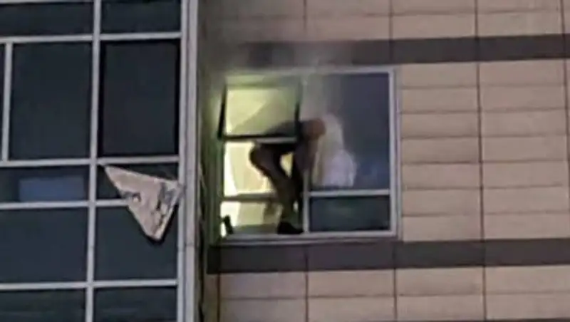 Появилось видео прыжка алматинского стрелка из окна 17 этажа