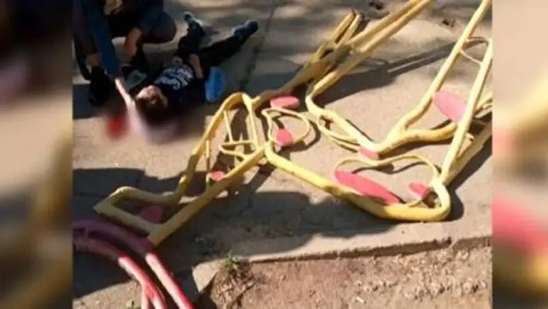 Железная конструкция заржавела и завалилась вместе с игравшим на ней ребенком, передает КТК.