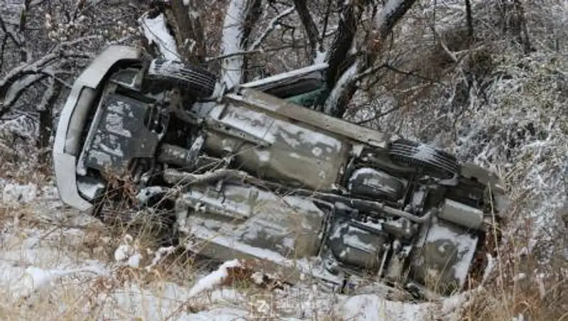 В микрорайоне Сулусай, на повороте со спуском, водитель не смог удержать автомобиль на дороге и упал в ущелье.