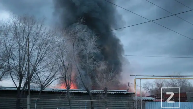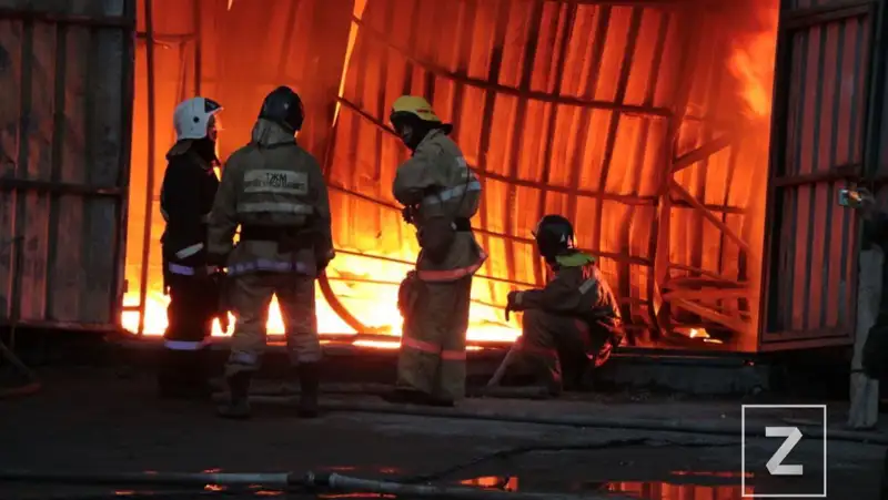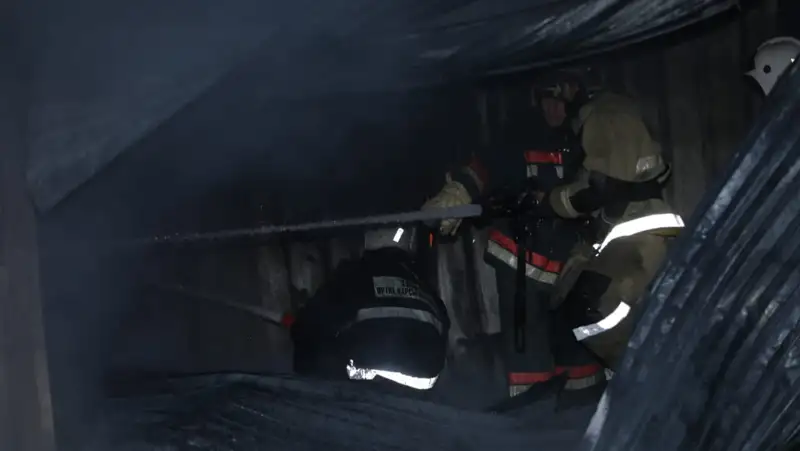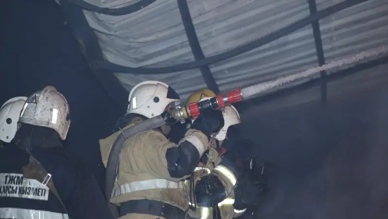 По данным городского ДЧС, горел склад (металлический ангар) в Жетысуском районе.