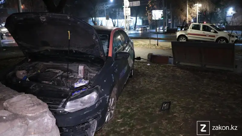 Водитель утверждает, что перепутал газ с тормозом, вследствие чего сбил пешеходов, вылетел на тротуар, снес скамейку и врезался в жилой многоквартирный дом по адресу Жибек-Жолы, 130.