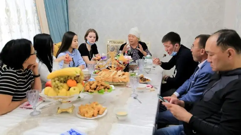 Рыскуль апай принимает гостей в своем новом доме, построенном на средства Beeline. Фото: Beeline Казахстан