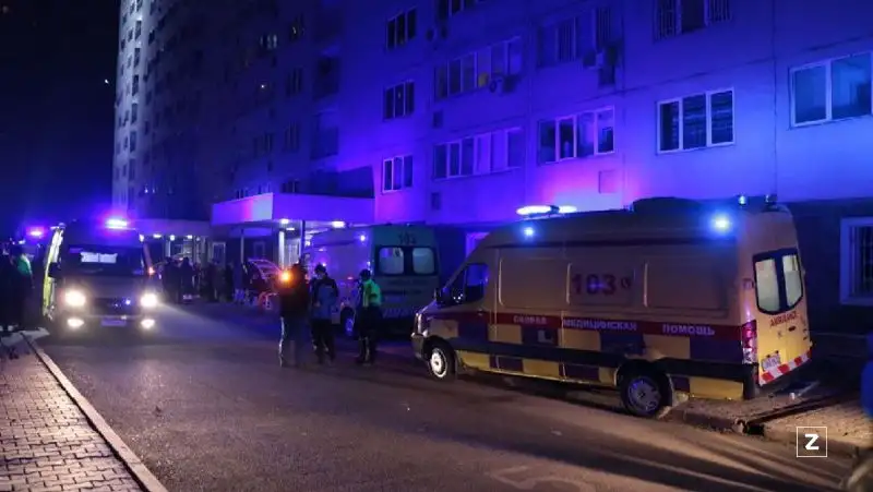 Отмечается, что для снижения концентрации дыма на лестничных клетках задействованы пожарные автомобили дымоудаления.