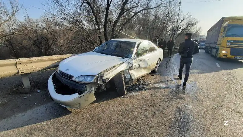 ДТП произошло в Алматы на мосту развязки на пересечении ул. Северное кольцо и ул. Бурундайская, передает Zakon.kz.