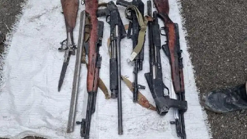 Из тайника извлекли четыре пистолета, шесть единиц нарезного и гладкоствольного оружия. Пресс-служба КНБ РК