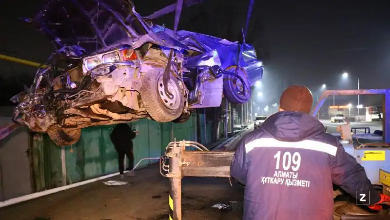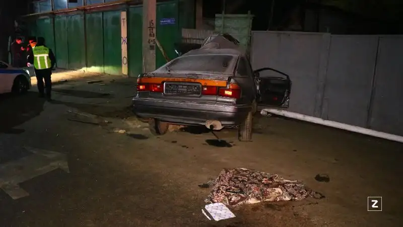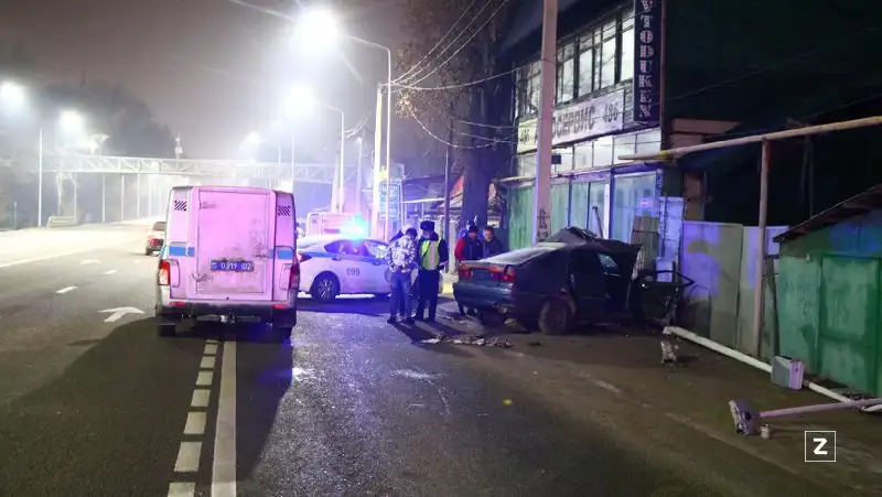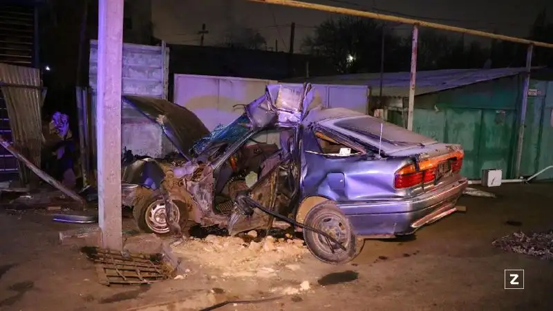 Mitsubishi снес столбы в Алматы, водитель скончался