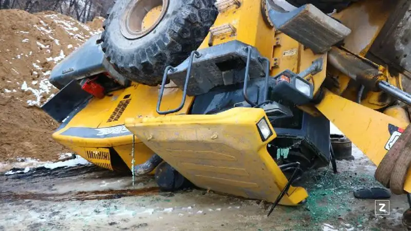 По словам очевидцев, погрузчик задним колесом заехал на песчаную горку. После чего его опрокинуло.