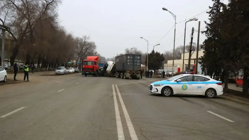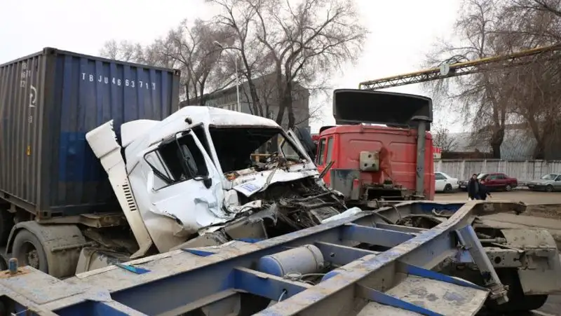 Два МАЗа столкнулись в Алматы – водителя зажало в кабине