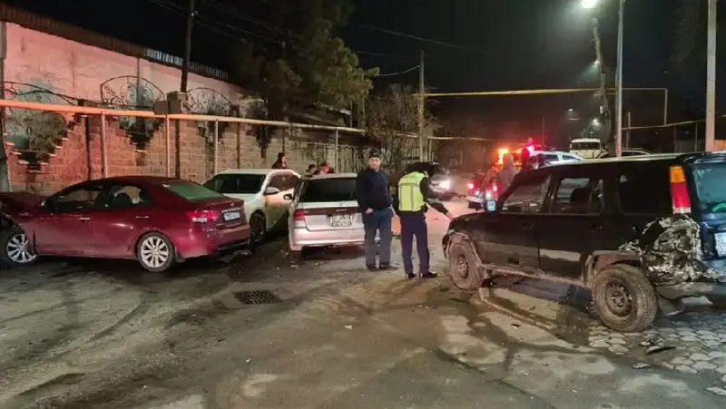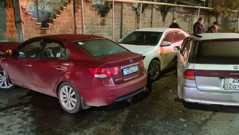 Honda Accord откинуло к припаркованному недалеко автомобилю Honda CR-V, а затем от удара вновь отбросило на дорогу, где автомобиль столкнулся с Toyota.