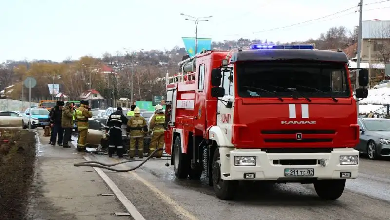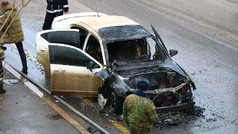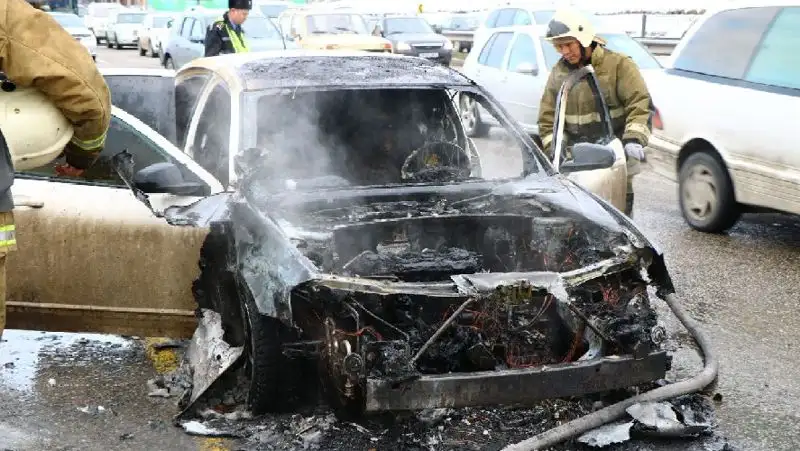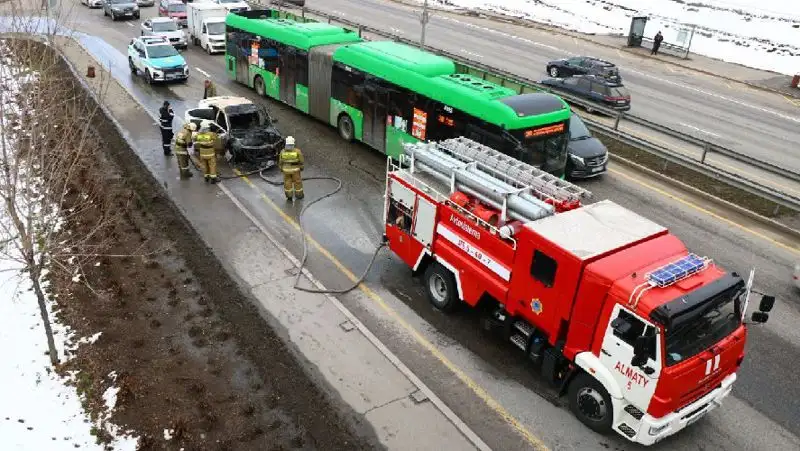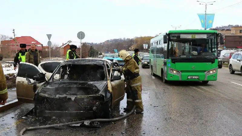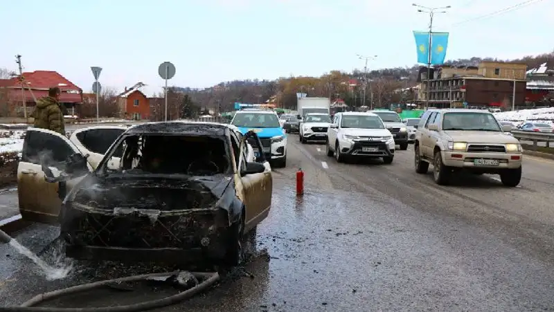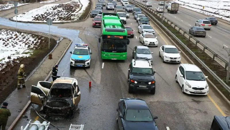 Пробка на ВОАД в Алматы: сгорел автомобиль