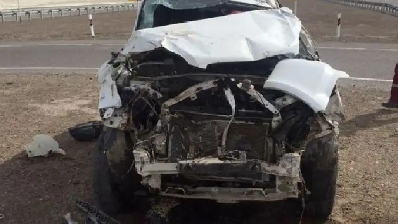 Кроссовер врезался в ограждение на обочине дороги в Мангистауской области