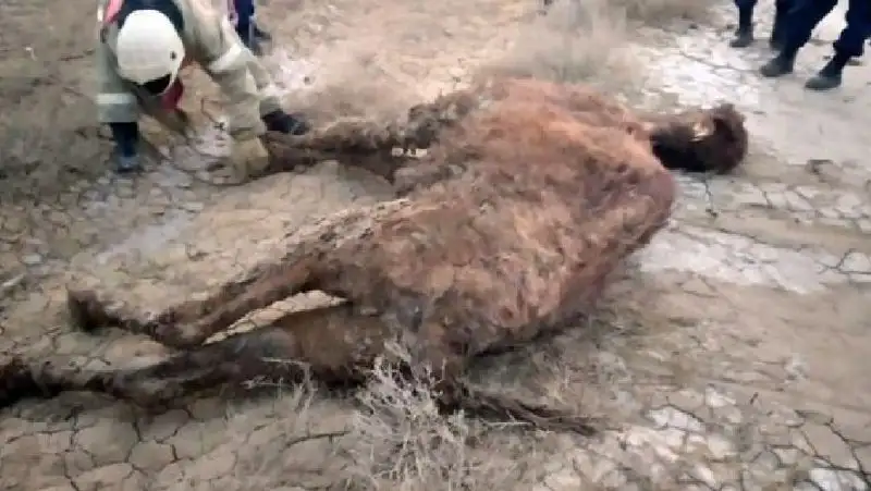 Застрявшего в солончаке верблюда спасли в Мангистауской области