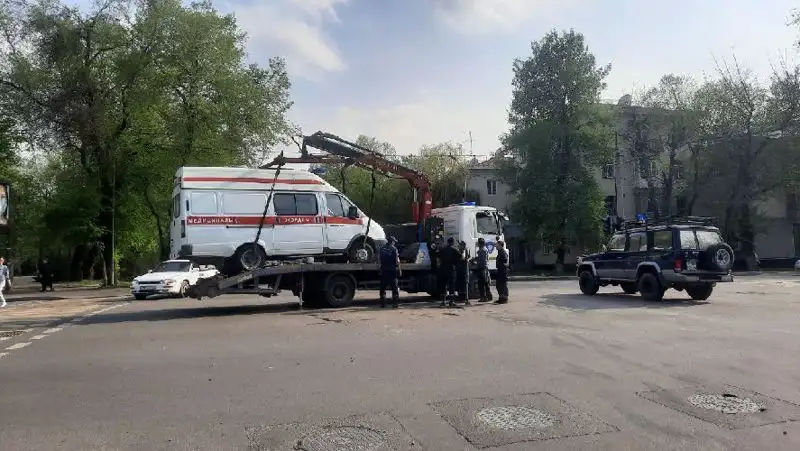 Массовое ДТП в Алматы: опрокинулась скорая помощь