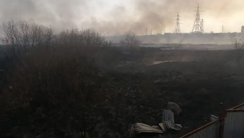 Общая площадь возгорания камыша составила 15 га.