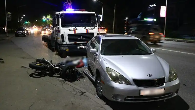 Мотоциклист погиб в Алматы, врезавшись в припаркованный Lexus