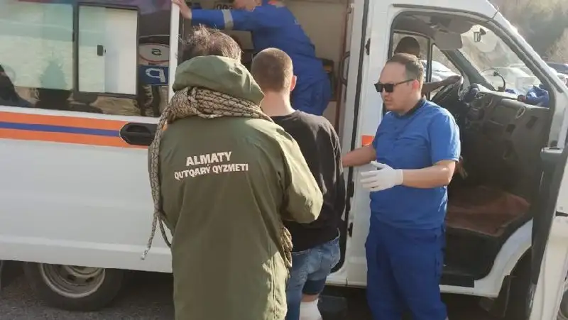 Подростку, получившему травму колена, оказали первую медицинскую помощь. Его доставили к ожидавшим у подножия горы сотрудникам Центра медицины катастроф МЧС РК.