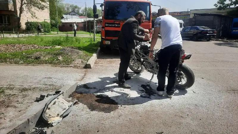 ДТП в Алматы: мотоциклиста отбросило на тротуар