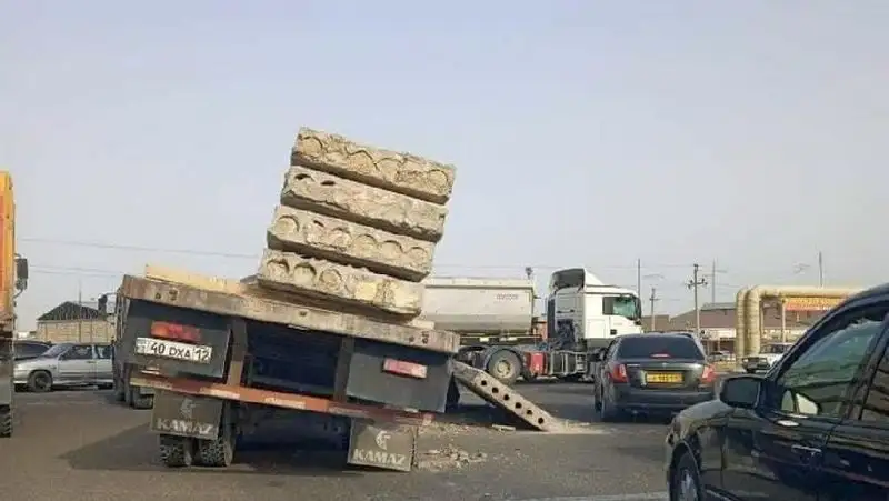Грузовой автомобиль выронил плиту на проезжую часть в Актау