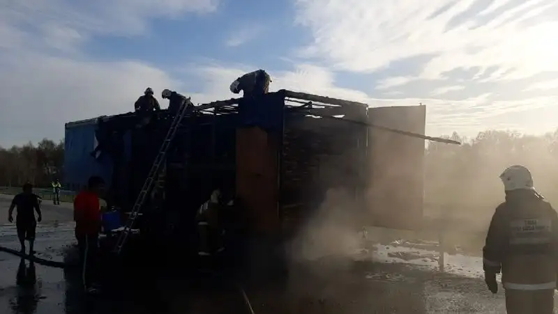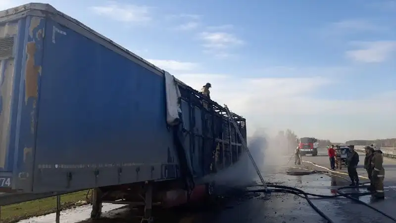Груженная древесиной фура загорелась на трассе в Акмолинской области