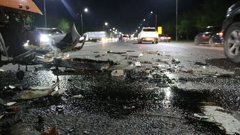 ДТП на улице Бауыржана Момышулы, фото - Новости Zakon.kz от 16.05.2022 00:23 Фото: Zakon.kz