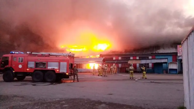 Около 100 пожарных тушили рынок в Щучинске