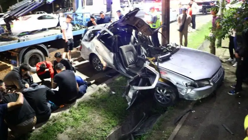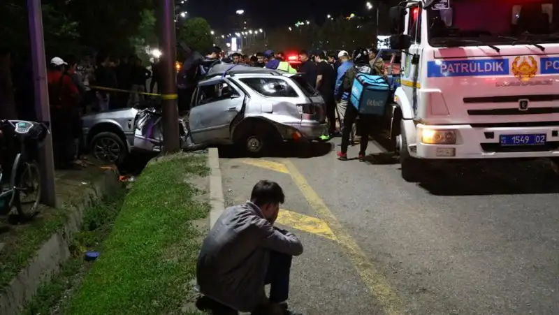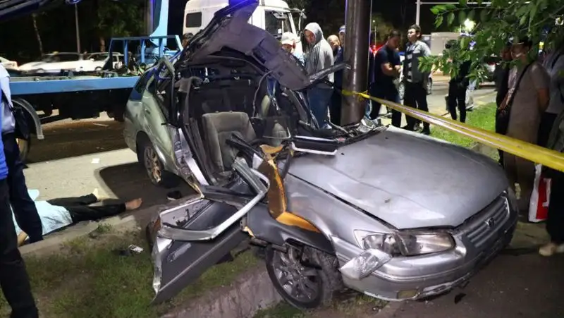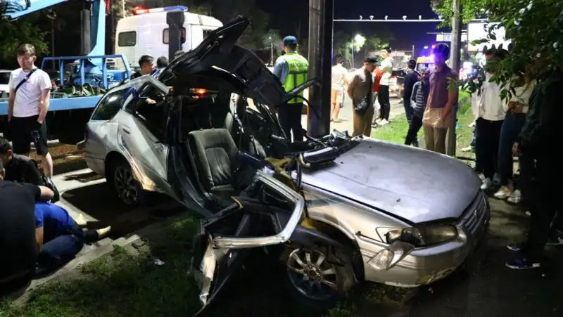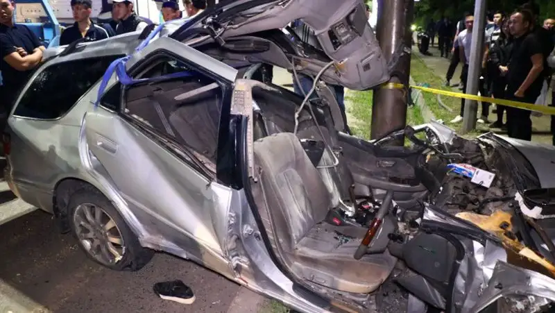 Со слов очевидцев, автомобиль Toyota Camry Gracia двигался в западном направлении по проспекту Аль-Фараби по крайней правой полосе. Проехав мимо ТЦ Esentai Mall, где дорога начала сужаться, Toyota зацепил Chevrolet Tracker. После чего Toyota выбросило за трассу, пронесло по бордюрам арыка, как по рельсам, затем развернуло боком, и машина врезалась в опору рекламного щита.