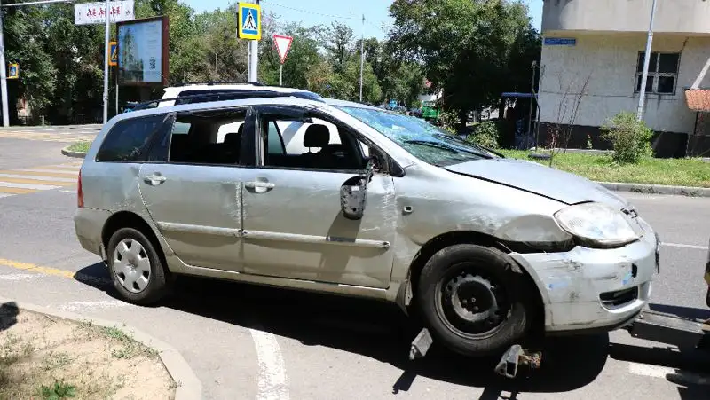 Автомобиль Volkswagen Polo двигался по ул. Толе би в западном направлении. Ему навстречу ехал автомобиль Toyota Corolla. С ул. Абдуллиных, по всей видимости, проигнорировав знак «Уступи дорогу», на перекресток выехал автомобиль ВАЗ-21114 и столкнулся с Volkswagen.