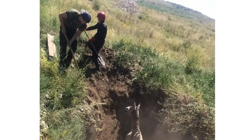 Хозяин участка обнаружил в яме чужую лошадь. Мужчина спустил ей на веревке ведро воды и накидал сена, а затем обратился за помощью к спасателям специализированного отряда города, передает Zakon.kz.