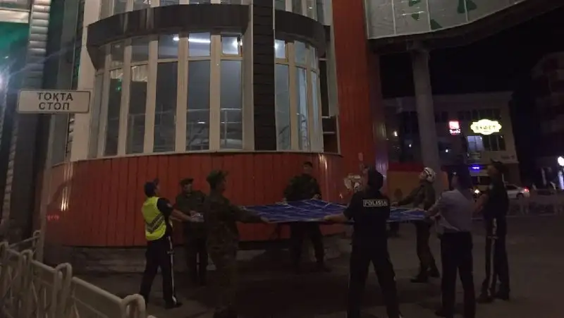 В операции участвовали сотрудники полиции, которые оцепили место происшествия и помогли держать спасательное полотно.