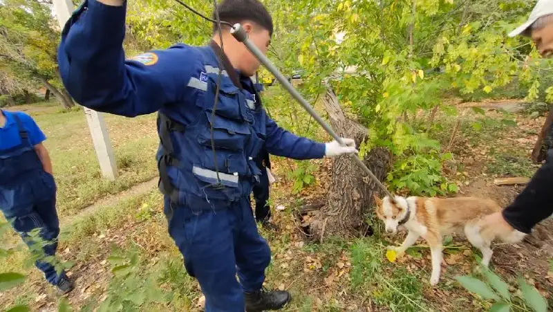 Упавшую в яму собаку вытащили спасатели в Усть-Каменогорске
