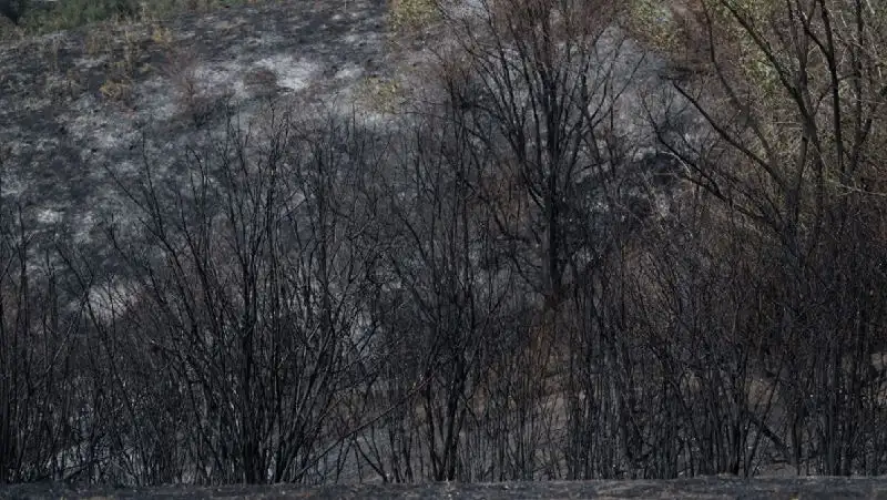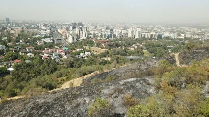 На месте возгорания до сих пор чувствуется сильный запах гари. Огнем было уничтожено три гектара. Сейчас обгоревший склон виден со смотровой площадки парка "Кок-Тобе".
