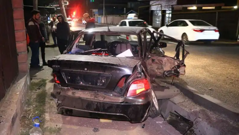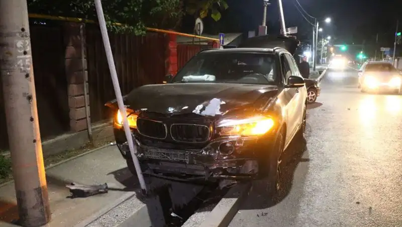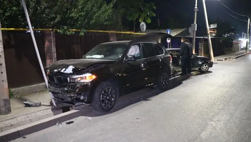 Потерявший управление BMW также откинуло в сторону, машина едва не упала в арык.