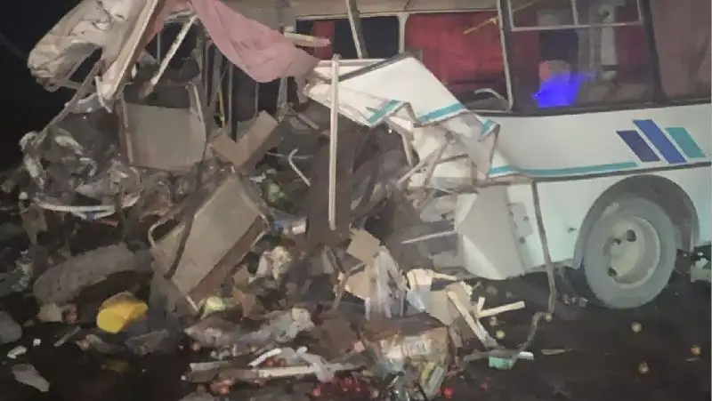 Автобус и грузовик столкнулись близ Караганды, есть жертвы