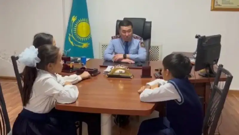 Начальник Жетысайского РОП полковник полиции Адильбек Сапарбеков специально пригласил в гости Назерке Калдыбайкызы, Раяну Ерлан и Нурасыла Нуржанулы, которые помогли раскрыть преступление.
