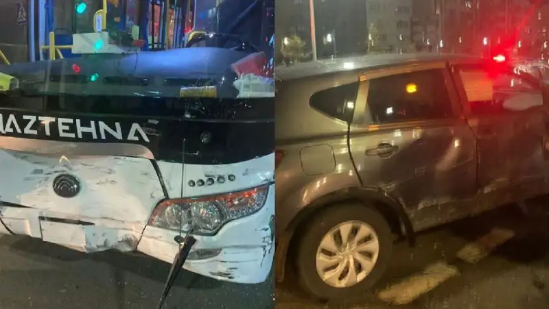 В Петропавловске маршрутный автобус с пассажирами попал в аварию
