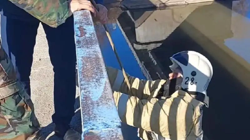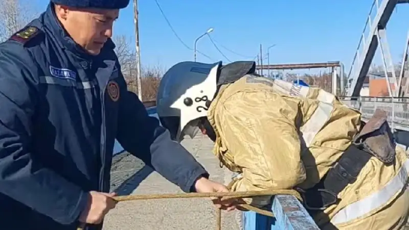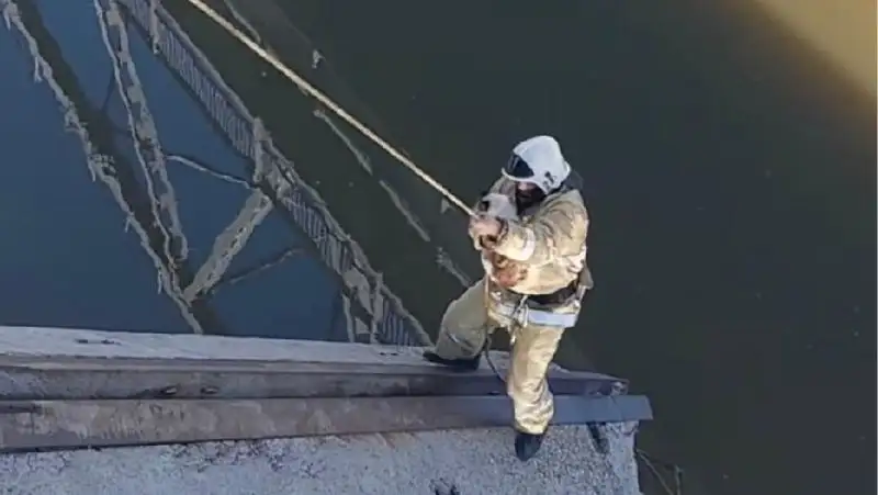 К сотрудникам службы ЧС города Шемонаиха обратились волонтеры-зоозащитники с просьбой о помощи по спасению кошки. Животное каким-то образом очутилось под мостом на перекладине, сообщает Zakon.kz.