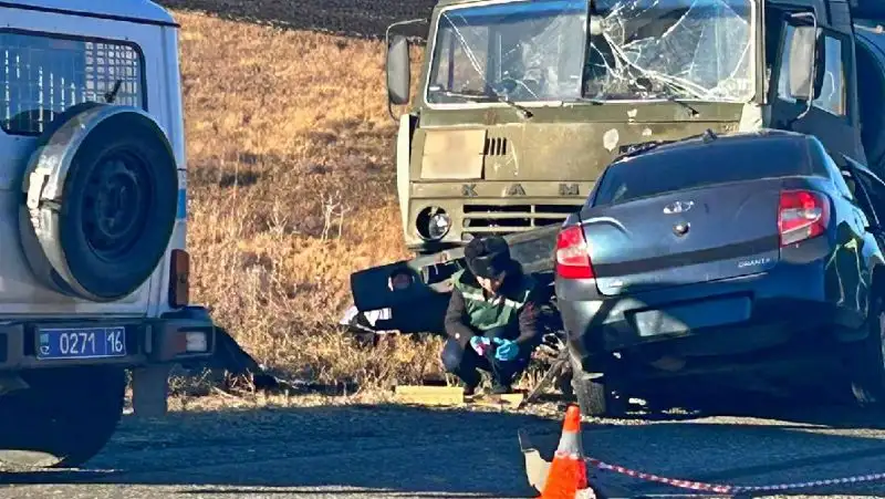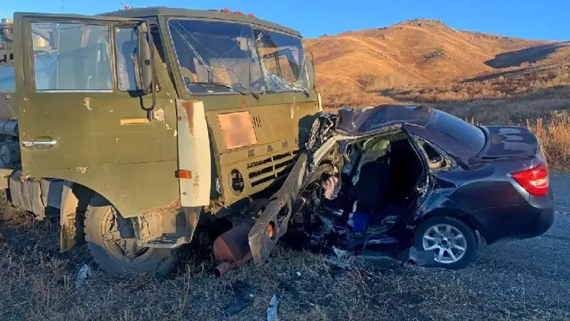 По информации пресс-службы ДП ВКО, на трассе Усть-Каменогорск – Рахмановские ключи водитель автомобиля Lada Granta выехал на полосу встречного движения и допустил лобовое столкновение с грузовым автомобилем.