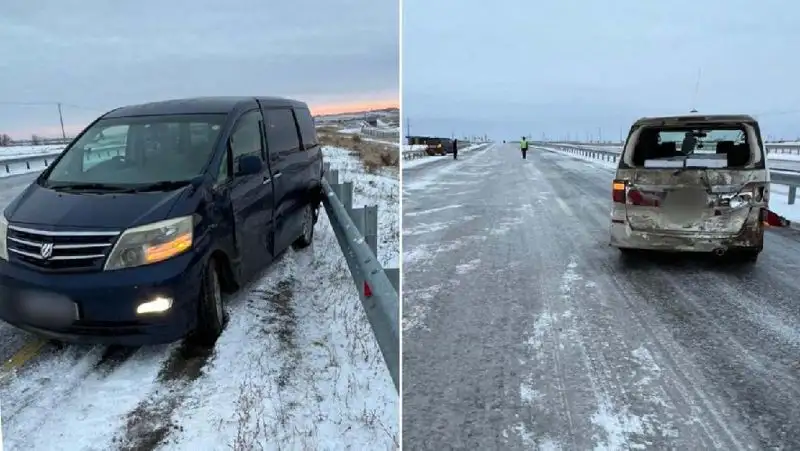 Так, 9 ноября около 06.15 на автодороге Павлодар – Кызылорда, в районе поселка Щидерты, произошло ДТП с участием двух автомашин Toyota Alphard. После столкновения одна из автомашин, изменив траекторию движения, совершила наезд на дорожное ограждение в виде криволинейного бруса.