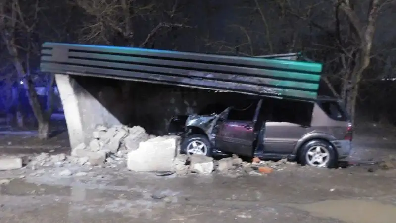 В Кокшетау сгорел автомобиль марки "Мерседес – ML-320" после столкновения с остановкой. Инцидент произошел 15 ноября в 05:53 на пересечении улиц Ауэзова – Подгорная, сообщает Zakon.kz.