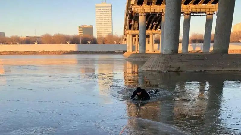 2 декабря в 09:08 очевидцы сообщили о том, что в реке Урал под Центральным мостом города тонет домашнее животное.