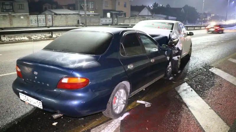 Hyundai протаранил припаркованный Chevrolet в Алматы
