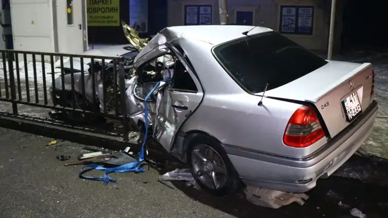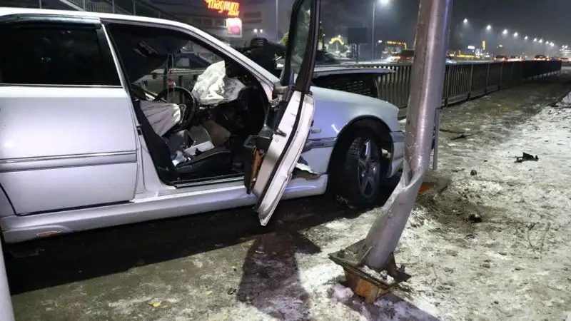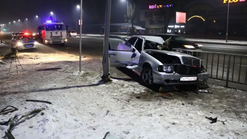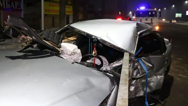 Также на место выехала бригада службы спасения города Алматы, так как водителя зажало в автомобиле.