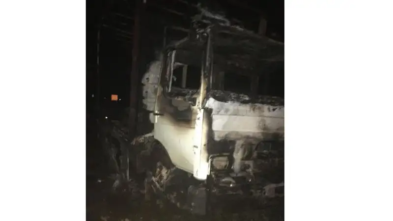 В Павлодарской области большегруз сгорел вместе с бытовой техникой