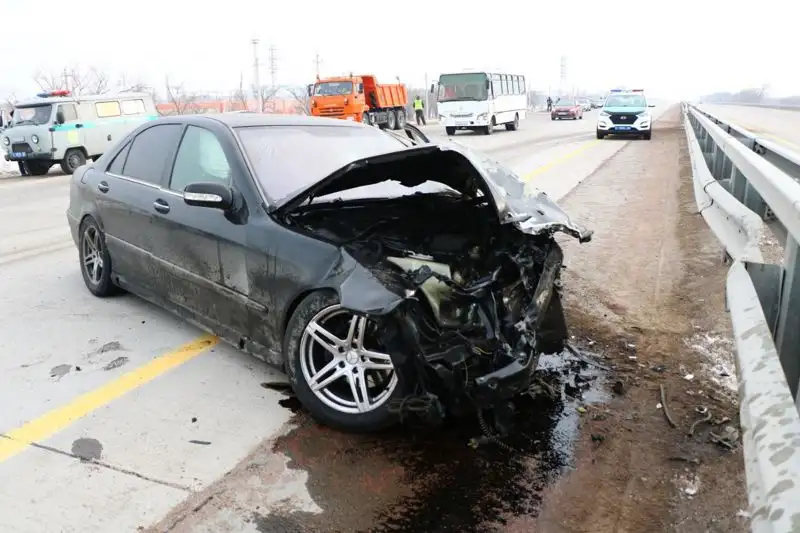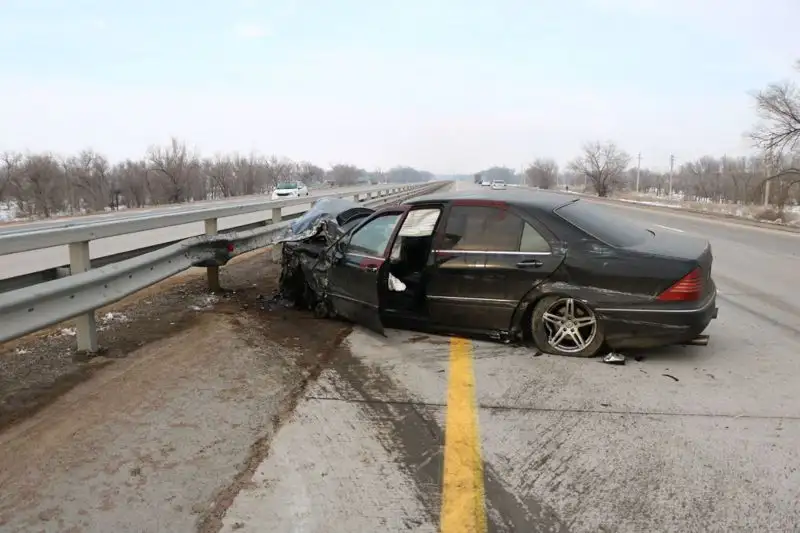 30 января на 54 километре Капчагайской трассы произошло столкновение Ford Mondeo и Mercedes-Benz S-Класс. От удара Ford вылетел с проезжей части в кювет и загорелся.
