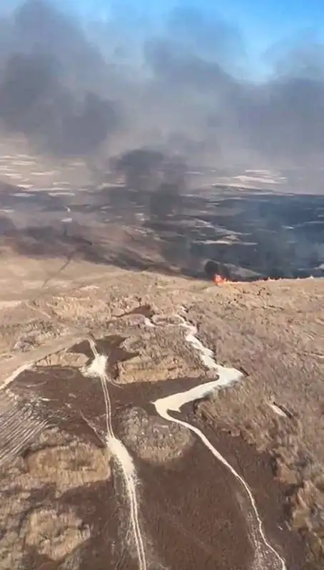 "В результате облета в 70-ти км в сторону Жылыойского района на побережье Каспийского моря были обнаружены три очага горения на предварительной площади 9 га. Территория, где происходит горение, является бесхозной, т.е прибрежная территория Каспийского моря. Дым от горения поступал в сторону города, в данное время направление ветра поменялось". ДЧС Атырауской области