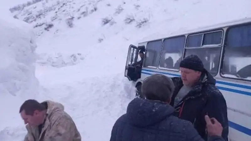 В ВКО снежная лавина сошла на автобус с людьми