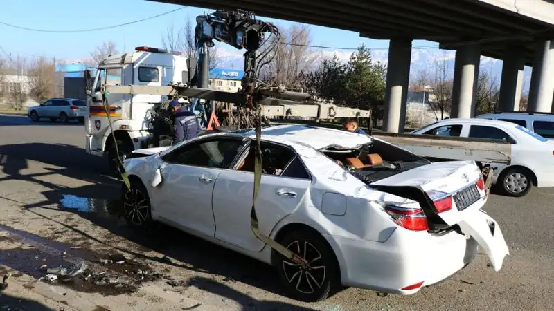В Алматы Toyota Camry слетела с моста