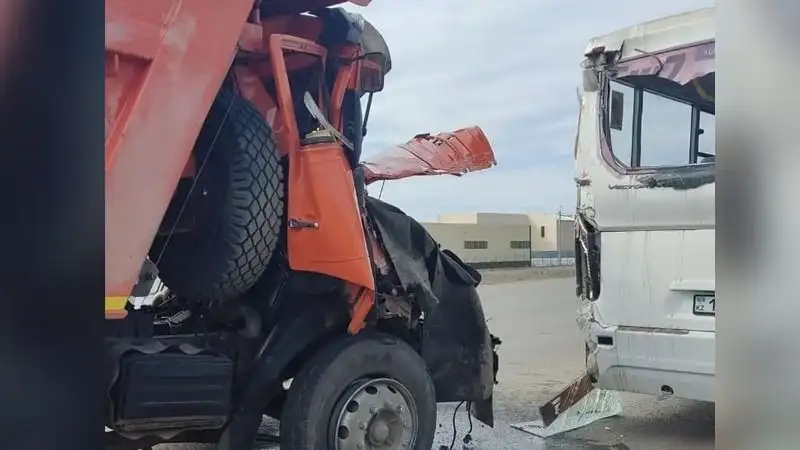 В Уральске пассажирский автобус столкнулся с КАМАЗом
